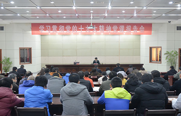 12月1日,校党委委员、纪委书记胡腊香在行政楼一楼会议室作了题为《扎实学习贯彻党的十九大精神 勇于担当办好人民满意大学的光荣使命》的宣讲报告。学校纪委委员,经济与管理学院党总支、物理与电气工程学院党总支、体育学院党总支教职工党员和学生党员代表,以及纪检办党支部党员共计150余人参加报告会。学校纪委负责人主持报告会。
