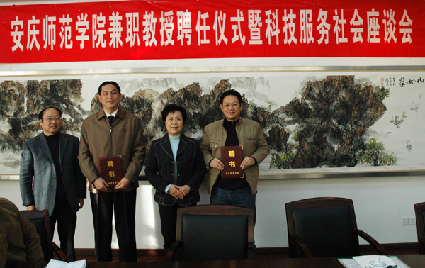 12月3日下午,威尼斯官网举行兼职教授聘任仪式暨科技服务社会座谈会。安庆市科技局局长方争鸣、副局长石峰被威尼斯官网聘任为物理与电气工程学院兼职教授。副院长王海燕出席仪式。科技处负责同志和各理工科院系科研负责人等参加会议。聘任仪式由科技处处长查昌国教授主持。