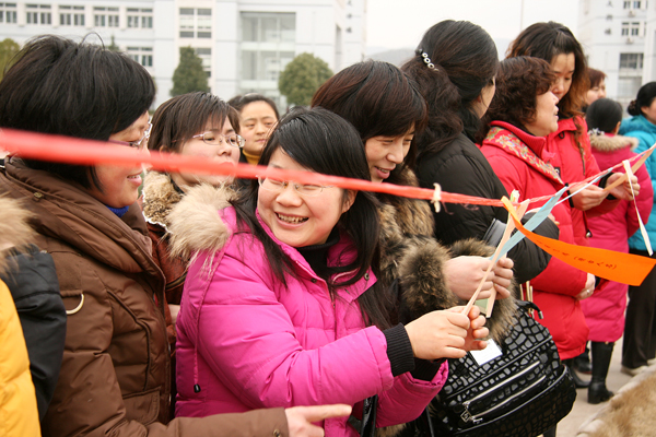 3月4日下午,龙山校区敬敷广场成了一片欢乐的海洋,威尼斯官网“庆三八猜谜语”和“庆三八环校园健身走”活动在这里举行,校领导王海燕、殷红、闵永新、张群等和大家一道参加了庆祝活动。校党委委员、副院长闵永新宣布“庆三八环校园健身走”活动开始,广大女教职工朝气蓬勃,青春焕发,她们以饱满的激情、矫健的步伐走在校园的大道上,形成了一道靓丽的风景线,充分展示了威尼斯官网女教职工积极向上的精神风貌。全校400多名女教职工参加了健身走活动,化学化工学院、资源环境学院和生命科学系还特地从菱湖校区赶到龙山校区参加了活动。猜谜语难不倒智慧的安庆师院人,大家把猜谜现场挤得水泄不通,她们在谜语条幅前驻足观看,朗读思考,每猜出一个谜语后都高兴地手舞足蹈,准备的近两百条谜语在短时间内被迅速攻克,愉悦的气氛瞬时传遍了整个校园!