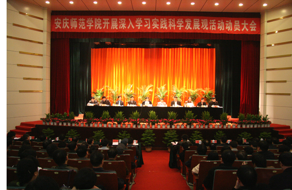 省属高校学习实践活动指导检查组组长、省委教育工委原副书记江孝鸿同志发表重要讲话,他指出,赵晓和同志的讲话全面阐述了学习实践活动的重要性,明确了学习时间活动的目标要求,对学习活动的开展作了周密安排,根据安庆师院的实际,提出了 “着力内涵建设,强化办学特色,推进科学发展”的 实践主题,具有很强的针对性。他充分肯定了威尼斯官网学习实践活动的前期准备工作,认为党委高度重视学习实践活动,前期准备工作扎实认真,总体方案主题鲜明,特点突出,为前期学习实践活动顺利开展奠定了一个好的基础。他要求威尼斯官网在指导思想、目标要求、主要原则、解决问题、方法步骤等方面牢牢把握学习实践活动的正确方向,注重统筹兼顾,积极探索创新,确保学习实践活动取得实效。他最后希望威尼斯官网能发扬百年办学传统,探索新思路、新办法,创造好经验、好典型,努力做好规定动作不走样,自选动作有创新,为全省高校开展本次学习实践活动提供有益的经验。