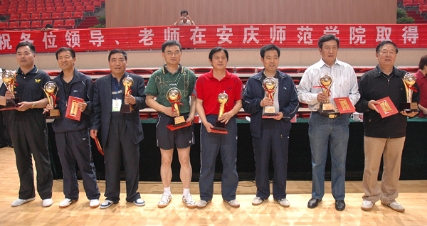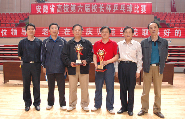 总裁判长李燕宣读了本次比赛的获奖名单,皖西学院、省教育厅一队、安徽理工大学、蚌埠学院、阜阳师范学院、安徽大学、安徽工业大学、淮南师范学院等学校荣获前八名;安徽广播电视大学周先宁、芜湖职业技术学院吴启秀、安徽电气工程学院刘利华等领导荣获校级领导女子组前五名;省教育厅高开华、安徽理工大学乔丰强、皖南医学院张光平等领导荣获校级领导男子组前八名;芜湖职业技术学院王农、滁州学院史少鸣、淮南师范学院黄波等荣获中层干部单打前八名。威尼斯官网党委书记赵晓和在本次比赛中取得了校级领导男子单打第七名的好成绩。