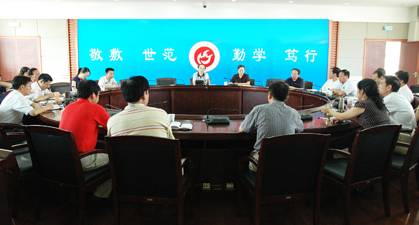 时新中同志主持了会议。他首先宣读了《关于成立安庆师范学院110周年校庆指挥部的通知》(院党字〔2008〕25号)。他强调,召开这次会议的目的在于进一步解放思想、提高认识、振奋精神,认真做好校庆筹备工作。在党委的领导下,各部门的努力下,前期准备工作进展顺利。下一阶段,要继续坚持“小型化、节约型、学术性”原则,集中学校的优势资源,以丰富多彩的文艺活动和文化系列成果展示等活动为载体,突出展示学校的办学特色和办学成果。他要求,各工作组要本着“恪尽职守、认真负责、各司其职、密切配合、节俭高效”的原则,在9月20日以前,制定出详细的工作方案,综合协调组要制定出校庆倒计时实施方案,扎实做好校庆筹备的各项工作。