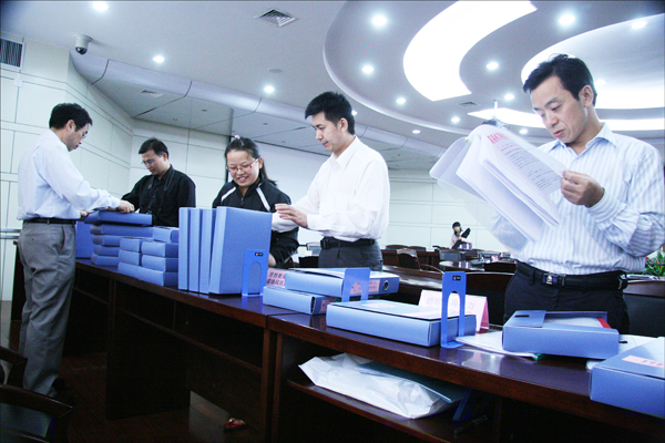 汇报会后,检查组查阅了威尼斯官网文明创建方面的相关材料。摆放在会场北边四张长桌上的5大类37盒创建文明单位材料引起了检查组的浓厚兴趣,陈啸副院长、李忠部长、张英明主任一盒一盒地进行了认真的查看,同时还就相关问题进行了询问。专家们认为,“你们的材料很多,很充实,也很真”。当看到威尼斯官网文明创建组织机构和职责分工的材料时,专家们认为,“从材料里可以看出文明创建工作常态化,创建过程清晰,从2003年到现在,每年的材料都有,有连续性,这是长期积累的结果”。