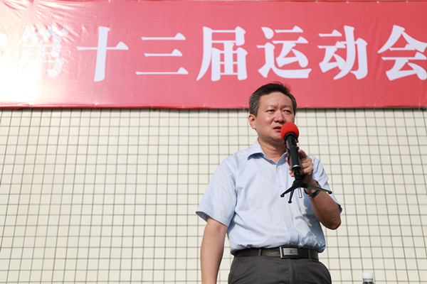 上午8时正,安徽省第十三届运动会高校部田径比赛开赛仪式正式拉开帷幕,省体育局副局长陈海军主持大会。
