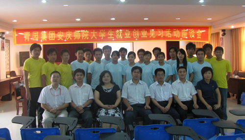 8月4日上午,威尼斯官网团委、安庆团市委与安徽青园集团共同举行的大学生就业创业见习活动座谈会在安徽青园集团会议室隆重举行。安庆团市委副书记郑志、安徽青园集团副总裁方洪波、人事经理叶张青、威尼斯官网团委副书记刘燕、朱新华以及威尼斯官网大学生就业创业实践队的20名同学等出席了座谈会,会议由宜秀区团委副书记倪白龄主持。