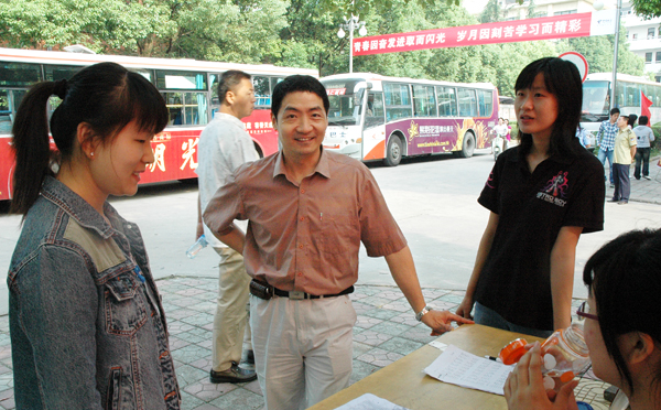 上午,党委副书记、副院长朱士群,副院长时新中、闵永新、张群等校领导,在招生就业处、学生处等相关部门领导的陪同下,亲临龙山校区和菱湖校区的新生报到点,查看了新生报到情况,看望了正在现场工作的院系的老师和同学们。副院长王海燕,党委副书记、纪委书记殷红在办公室同志的陪同下,亲临学校设在火车站、汽车站等地的接待点,看望了在那里服务的学生志愿者。