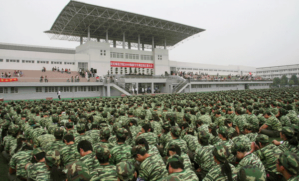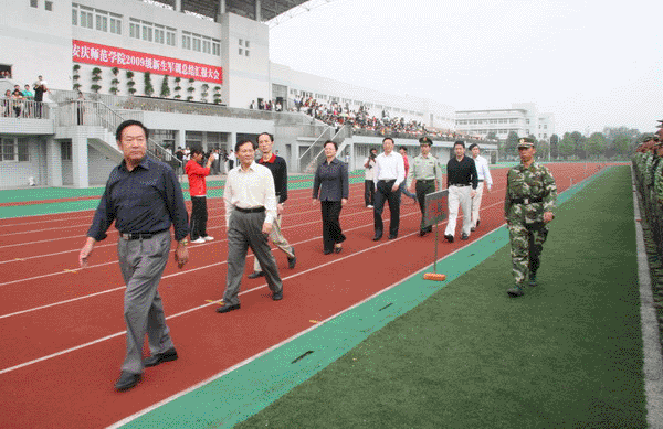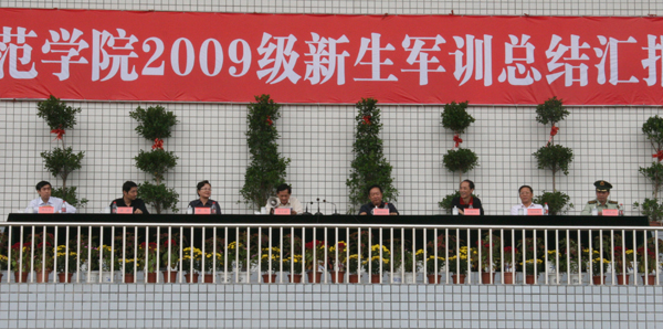 9月22日上午,威尼斯官网在龙山校区塑胶运动场隆重举行2009级学生军训汇报总结大会。校党委书记赵晓和,党委副书记、副院长朱士群,党委委员、副院长时新中,党委副书记、纪委书记殷红,党委委员、副院长闵永新,副院长张群等校领导和党委委员、党办、院办、外事办公室主任、生命科学系党总支书记刘友忠,武警安庆支队副支队长胡庆南等领导出席大会。各院系分管领导、有关职能部门负责同志参加了大会。全校十五个院系2009级学生近六千人进行了军训汇报演出。大会由时新中副院长主持。