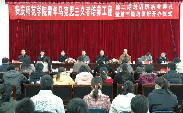 党委委员、副院长时新中代表学校党政班子作重要讲话。他在讲话中充分肯定了青年马克思主义者培训工作,并对学员提出了殷切的期望:一是勤奋学习,学深学透。他指出,本次培训班的学习是起点,要扎扎实实的学,坚持不懈的学。在学习中培养正确的世界观、人生观和价值观,树立远大的理想抱负,把自己的前途理想和祖国的命运紧紧的联系在一起;二是胸怀祖国,志存高远,树立为中华崛起而读书,为中华民族复兴而奋斗的志向,把个人的成长进步融入到推动国家发展、民族振兴的时代洪流中去,心系民族命运、心系国家发展、心系人民福祉,与时代同步伐、与祖国共命运。三是坚定信念,忠诚于党,始终用社会主义核心价值体系衡量自己,用马克思主义武装自己,牢固树立科学的世界观、价值观和人生观,坚定信念,永远跟党走,听党话,为建设中国特色社会主义伟大事业激扬青春,谱写辉煌。四是消化吸收,注重实践,把自己看成一颗颗火苗,一粒粒种子,用实际行动和工作实绩去温暖点燃更多的火种,发展为燎原之势。