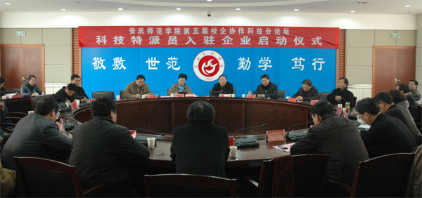 校企协作论坛科技分论坛在龙山校区二楼会议室举行。校党委书记赵晓和,副院长闵永新、安庆市委组织部副部长桂清、安庆市科技局副局长石峰、安庆市市直有关单位代表、安庆市有关企业代表和安庆师范学院首批科技特派员、院系科研负责人参加了分论坛的交流。分论坛由副院长王海燕主持。