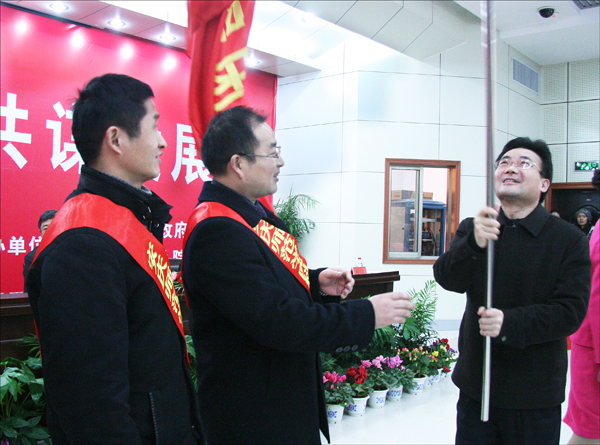 安庆市人民政府副市长黄杰为安庆师范学院企业科技特派员授旗