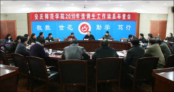 根据学校安排,威尼斯官网于2月28日上午在龙山校区行政楼二楼会议室召开了安庆师范学院2010年选调生工作动员布置会。党委书记赵晓和、副院长张群出席会议。组织部、宣传部、教务处、招生就业处、学生处、团委、监察审计处等部门主要负责人和各学院党总支书记参加了会议。组织部部长陈光明主持了会议。