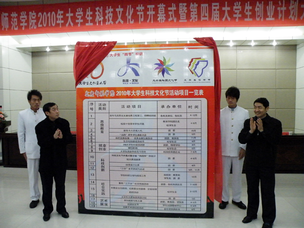 副院长张群,党委委员,党办、院办、外事办主任刘友忠共同为科技文化节标识及活动内容揭牌。