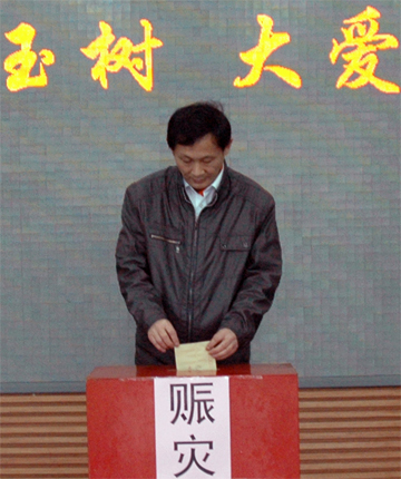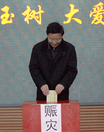 情系玉树,爱心相连。灾情牵动着全国亿万人民的心,也引起威尼斯官网广大教职员工的极大关注。4月21日上午,威尼斯官网党委书记赵晓和,党委副书记、院长朱士群,党委委员、副院长时新中,党委委员、副院长王海燕,党委委员、副院长闵永新,副院长张群,党委委员、党办、院办、外事办主任、生命科学学院党总支书记刘友忠在行政楼带头捐款。党委副书记、纪委书记殷红因出差在外,特委托进行了捐款。