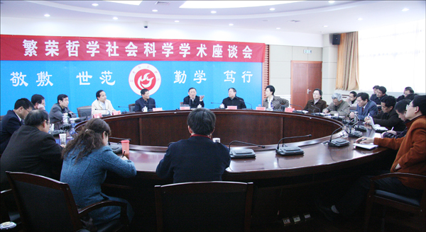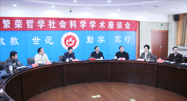4月9日下午,一场别开生面的“繁荣哲学社会科学学术座谈会”在龙山校区行政楼二楼会议室举行。安徽省委宣传部黄传新副部长、理论处副处长唐国富亲临会场,和威尼斯官网哲学社会科学工作者们进行了热烈的座谈。党委书记赵晓和,党委副书记、院长朱士群,副院长王海燕,党委副书记、纪委书记殷红等校领导出席了座谈会,相关职能部门负责人、文科院系教师60余人参加。朱士群院长主持座谈会。