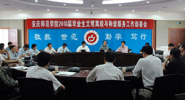 6月9日下午,威尼斯官网在龙山校区行政楼二楼圆桌会议室召开2010届毕业生文明离校与和谐服务工作部署会。校党委委员、副院长时新中,副院长张群出席会议。院办、组织部、宣传部、教务处、国资处、财务处、保卫处、招生就业处、学生处、团委、图书馆、后勤管理处、后勤集团、安苑公司等单位负责人,各学院党政主要负责人、就业秘书、毕业班辅导员共60余人参加了会议。会议由副院长张群主持。