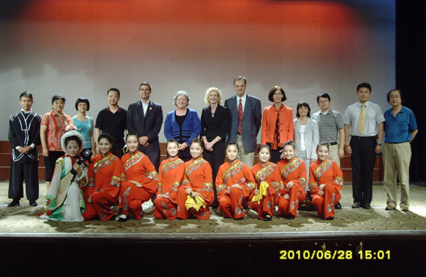 6月28日下午,美国索尔兹伯里大学(Salisbury University)副校长Diane Lara Allen博士、文学院院长Maarten Lucas Pereboom教授、汉语教师linda博士等国际友人一行在学校外事办负责同志的陪同下参观了音乐学院黄梅剧艺术学院,受到该院领导的热情接待。
