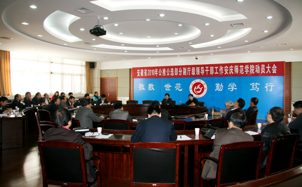 10月22日上午,威尼斯官网在龙山校区行政楼圆桌会议室召开安徽省2010年公推公选副厅级领导干部动员会。党委书记何小祥,党委副书记、纪委书记殷红出席会议。各学院党政主要负责人,机关各部门主要负责人参加会议。会议由党委副书记、纪委书记殷红同志主持。
