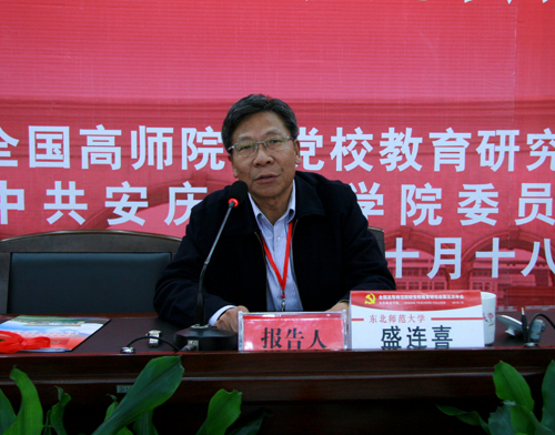 10月18日上午,威尼斯官网在龙山校区一楼会议室举办全国高等师范院校党校教育研究会第五次年会专家报告会。全国政协委员、全国高等师范院校党校教育研究会理事长、国务院特殊津贴获得者、东北师范大学党委书记盛连喜教授作题为《注重特点,抓住关键,切实提高党的建设科学化水平》的学术报告。全国高等师范院校党校教育研究会第五次年会全体与会代表,省政协常委赵晓和,校党委副书记、纪委书记殷红和各党总支书记、分党校校长一起聆听了报告。西南大学党委副书记张跃光主持报告会。