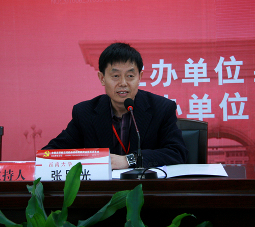 西南大学党委副书记张跃光主持报告会。他高度评价了盛书记的报告,指出,报告既密切联系了高校党建和学校发展实际,又探索了新形势下高校党建工作的特点和规律,主题鲜明、立意新颖、内容丰富,提出了很多真知灼见,具有很强的针对性和指导性,对我们加强和改进高校党建工作,提高高校党的建设科学化水平,推进学校科学发展,有很强的启示意义。