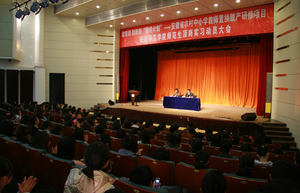 11月12日下午,威尼斯官网在龙山校区音乐报告厅隆重召开“国培计划”顶岗支教实习动员大会,副院长张群教授出席会议并讲话。学生处、团委、招生就业处负责人,外国语学院、物理与电气工程学院、人文与社会学院、资源与环境学院、政法学院、计算机与信息学院分管教学和学生工作领导及全体顶岗实习师范生共500余人参加了会议。