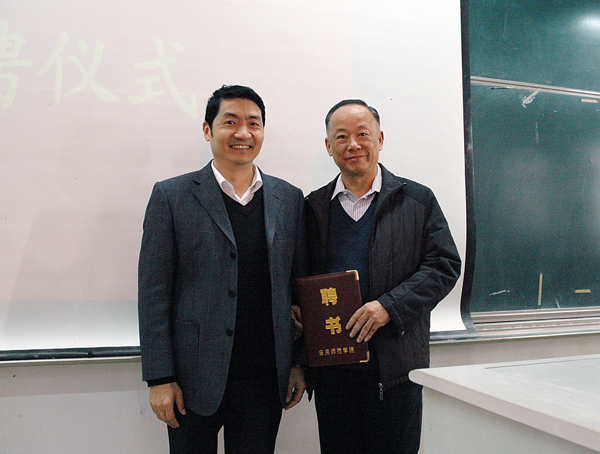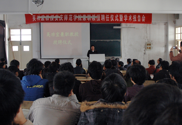 副院长张群教授为吴功宜教授颁发了安庆师范学院兼职教授聘书。