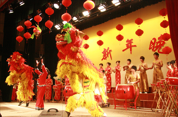 本次晚会分《狮舞迎春归》、《流金岁月歌》、《飞雪弄春色》3个篇章,12个绚丽多姿、风格各异的音乐、舞蹈,器乐等展示出特有的神韵和风采,给师生员工以无穷的艺术享受,向全体师生员工送上了美好的新年祝福。晚会在激情高昂的《为祖国干杯》的美好祝愿中完美谢幕。(文/齐济友 图/陈东)