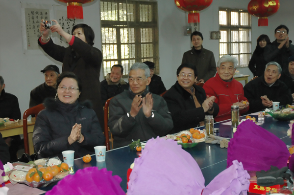 党委副书记、纪委书记殷红,受何小祥书记、朱士群院长委托在祝寿会上致贺词。殷书记首先向老同志们致以新年的问候,对70、80、90岁高龄的20位寿星表示诚挚的祝福,对老同志们为学校发展所做出的贡献表示崇高的敬意和衷心的感谢,对离退休人员工作处为老同志们所做的工作给予了充分肯定。她指出,各位离退休老同志是威尼斯官网的宝贵财富,在学校发展的各个阶段、不同岗位上,勤勤恳恳、任劳任怨,做出了重要贡献;她希望各位离退休老同志一如既往关心支持学校发展,为学校发展建言献策。殷书记还从创先争优活动、质量工程建设、一级学科申报、师资队伍建设、教学科研、招生就业、校企合作、文明创建、学生管理及后勤等几个方面向老同志们通报了去年学校的主要工作。