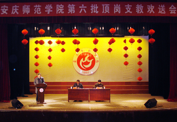 张群副院长回顾了威尼斯官网自2008年以来开展顶岗支教工作的开展情况,总结了顶岗支教工作的重大意义,并对进一步做好此项工作提出了具体要求。他指出,顶岗支教既是当前高师院校教育改革的需要,也是教师教育改革的一个重要环节,是创新教师培养模式、提高教师培养质量的重要举措,是解决贫困地区农村师资短缺的有效途径,是贯彻落实教育部关于师范生顶岗支教工作部署的重要举措。威尼斯官网前期开展的顶岗支教工作在安徽省开创了先河,取得了优异的成绩,受到省教育厅、安庆市政府领导的高度重视。在顶岗支教工作的基础上,威尼斯官网在教育部、财政部“国培计划”申报和实施工作取得了良好的成绩。张群副院长对第六批顶岗支教生提出了四点要求:第一,要怀有强烈的事业心、责任心,做好顶岗支教各项工作;第二,要牢记“学高为师,身正为范”的师训,崇尚师德、师风;第三,要做好吃苦耐劳的准备,敢于应对各种困难的挑战;第四,要做好安全工作,杜绝任何安全事故的发生。