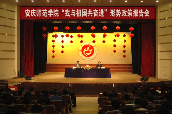 4月13日下午,全国人大代表,安庆市环新集团董事长、总经理,安庆市帝伯格茨活塞环有限公司董事长潘一新先生在威尼斯官网龙山校区音乐报告厅为威尼斯官网学生做全国人大十一届四次会议精神专题报告。党委委员、副院长时新中出席并主持报告会,学生处工作人员、青年马克思主义者培训班全体学员和学生代表共350余人参加了报告会。