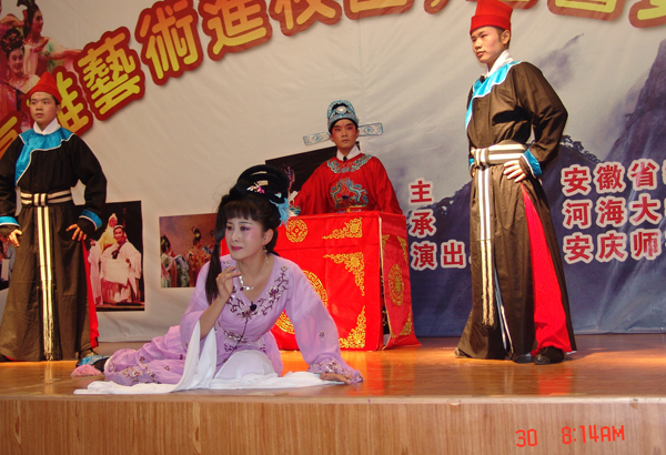 根据省教育厅安排,在学校领导的高度重视和支持下,5月28至29日,威尼斯官网黄梅戏艺术团在黄梅剧艺术学院院长、音乐学院党总支书记金根山的带领下,赴马鞍山参加“高雅艺术进校园”活动,先后在安徽工业大学、河海大学文天学院两所高校公开演出,取得圆满成功。