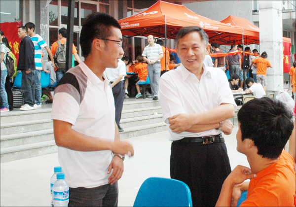 8日上午,何小祥、朱士群、殷红、闵永新、张群、汪时珍、时新中等校领导,在办公室等相关部门负责同志的陪同下,亲临龙山校区、菱湖校区的新生报到点和学校设在火车站、汽车站等地的接待点,查看了新生报到情况,看望了正在现场工作的院系的老师和学生志愿者。