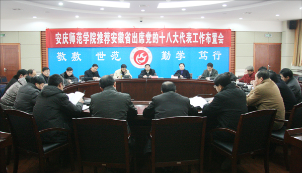 为切实做好出席党的十八大代表候选人初步人选推荐工作,12月31日下午,学校召开党总支书记会议,部署安徽省出席党的十八大代表候选人初步人选推荐工作。校党委书记何小祥出席并发表重要讲话,党委副书记、纪委书记殷红主持会议。党委委员、办公室主任刘友忠,党委委员、组织部部长陈光明,各党总支书记及组织部有关人员参加会议。