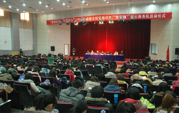 为进一步加强大学生的思想道德教育,提升同学们的社会责任感和奉献意识,引导同学们在锻炼自我、服务他人的过程中健康成长、励志成才,根据学校“学雷锋”主题实践活动等有关会议精神,2月29日下午,外国语学院受助学生“学雷锋”爱心服务团队——“安庆师范学院蒲公英爱心服务队”启动仪式在龙山校区逸夫图书馆报告厅隆重举行。校党委委员、副院长汪时珍出席会议,学生处等职能部门负责同志以及外国语学院党政领导班子、全体辅导员老师参加了会议,学院一、二、三年级国家奖学金、励志奖学金、国家助学金及社会捐助奖学金获得者、全体学生党员、第九届团总支学生会主要干部共400余人参加了会议。