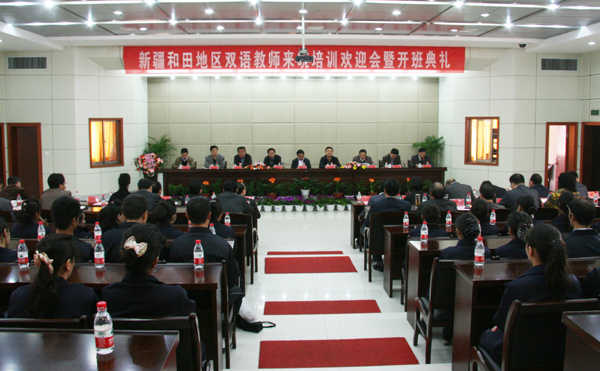 省人力资源和社会保障厅副厅长刘少华在讲话中对威尼斯官网承办双语教师培训的各项准备工作给予了充分肯定。他指出,人才援疆作为新一轮援疆工作的重要组成部分,是五个援疆内容之一。他要求各有关部门要着眼大局、齐心协力、立足实际,确保培养工作取得实效。他对学员提出三点希望:一是要热爱祖国、提升境界,努力成为维护民族团结的可靠力量;二是要潜心学习、大胆实践,努力提升和田地区中小学和学前幼儿园教育的整体质量;三是要严格自律,完善自我,努力维护新疆青年的良好形象。