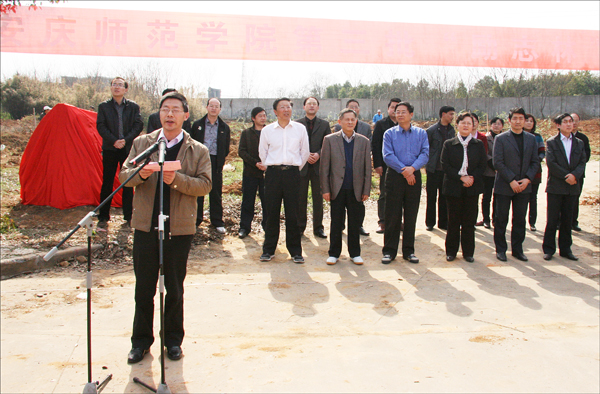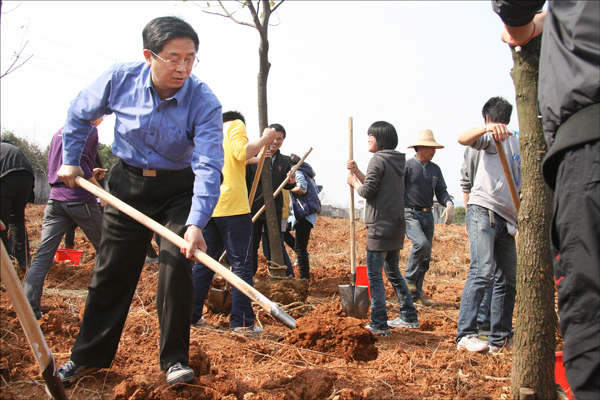 何小祥书记和朱士群院长为第三批“励志林”揭牌。简短的仪式之后,全体校领导和广大师生一起进行了植树活动。
