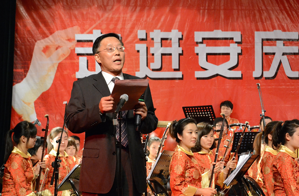 “这次音乐会共有95名演职人员,安庆师范学院是我们今年四场演出的第一站,” 安徽师范大学学院音乐学院党委副书记奚泰来介绍说,“从暑假开始我们一直在做紧张训练,演出的一星期前更是加班加点地练习,希望为我们的兄弟院带来最精彩的节目。”