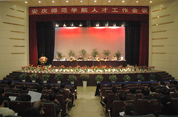 经过精心筹备,11月1日上午,安庆师范学院人才工作会议在龙山校区音乐厅隆重召开。校党委书记何小祥,院长朱士群,副院长闵永新、张群、汪时珍、刘友忠等校领导出席会议,省教育厅人事处处长解平应邀出席。全校教授、博士、处级以上干部及教师代表参加了会议。校党委书记何小祥主持开幕式并发表重要讲话。