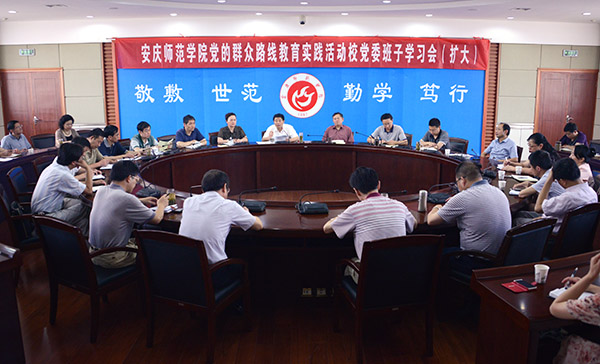 7月11日上午,学校召开党的群众路线教育实践活动校级领导班子第一次专题学习会,会议扩大到学院主要负责同志和机关各部门主要负责同志,校党委班子全体成员何小祥、朱士群、殷红、闵永新、张群、汪时珍、刘友忠、陈光明、方锡球,各学院和机关单位主要负责人参加会议。党委书记何小祥主持会议。