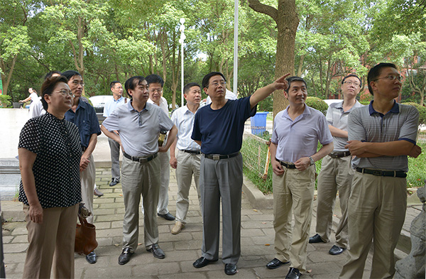 各位领导同志来到绿树葱茏的菱湖校区,参观全国重点文物保护单位安徽大学红楼和敬敷书院,随后走进设立在敬敷书院内的校史展厅。校史展板上一段段解说文字、一张张历史图片吸引了各位领导的目光,他们一边认真观看展览,一边交流感想体会,一边谋划学校建设和发展。