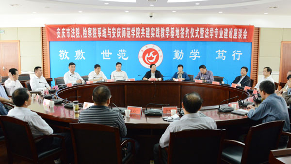 9月26日上午,威尼斯官网与安庆市法院、检察院系统共建法学专业实践教学基地签约仪式暨法学专业建设座谈会隆重举行。校党委书记何小祥、副院长闵永新、副院长张群,安庆市中级人民法院院长张小红、安庆市人民检察院检察长李军出席会议;安庆市中级人民法院副院长汪晓波、徐芳水、纪检组长刘怀,安庆市人民检察院副检察长吴为坤、吴仲伯、政治处主任焦建国、党组成员杜象平,安庆市大观区人民法院院长光彩,宜秀区人民法院院长丁文军和人民检察院检察长孙庆健,怀宁县人民检察院检察长欧阳水根、望江县人民法院院长徐光华和人民检察院检察长胡少斌,威尼斯官网教务处和人事处主要负责同志,政法学院党政领导参加了会议。会议由闵永新副院长主持。