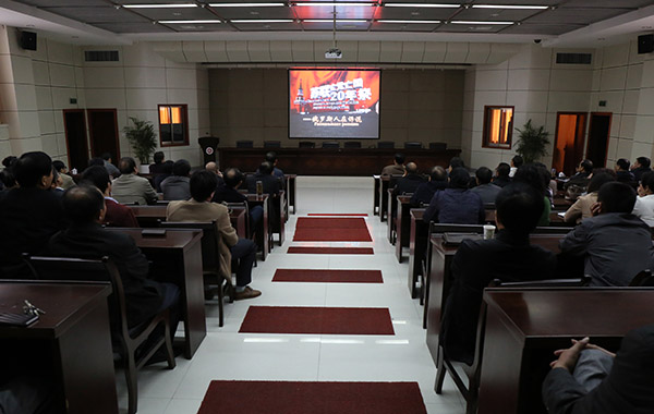 为扎实推进威尼斯官网党的群众路线教育实践活动,根据上级有关文件要求,10月16日下午,学校党委中心组召开扩大会议,集中观看党内教育参考片《苏联亡党亡国20年祭——俄罗斯人在诉说》。校党委书记何小祥,党委副书记、院长朱士群,党委副书记、纪委书记殷红,党委委员、副院长闵永新、张群、刘友忠,党委委员、组织部部长陈光明、文学院院长方锡球等校党政领导与处级以上党员干部一起观看了教育片。