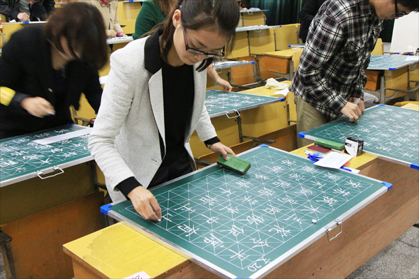 参赛高校和选手都非常重视这次赛事,各高校都提前举办了校级选拔赛。威尼斯官网则进行了院、校两级选拔,最后又进行了校级模拟比赛。威尼斯官网汪潇潇同学在接受采访时表示,“学校对本次比赛十分重视,根据比赛项目,特意安排了指导老师为我们做了针对性的训练与指导。”因为她住在菱湖校区,训练在龙山校区,备战期间她每个星期都要往返于两个校区之间,她告诉记者,“就在比赛的前一天晚上,我们还一直练习汉字书写到9点多钟。”