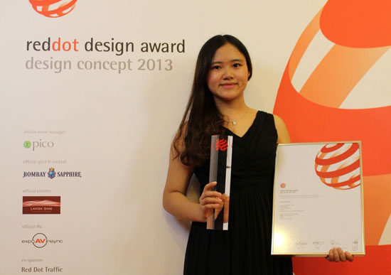 洪玉洁2013年在新加坡红点设计大赛上领奖