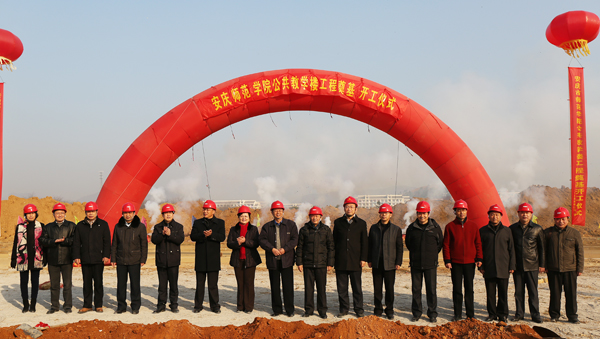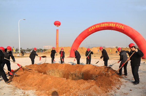 1月2日上午,简朴的公共教学楼工程奠基仪式在工程施工现场举行,全体校党政领导为公共教学楼工程奠基。工程施工单位安徽华力建设集团有限公司总经理赵学军,工程监理单位安徽科创工程项目管理公司代表,威尼斯官网生命科学学院、资源环境学院、外国语学院、院长办公室、新校区建设办公室等相关院系、职能部门负责人参加了奠基仪式。