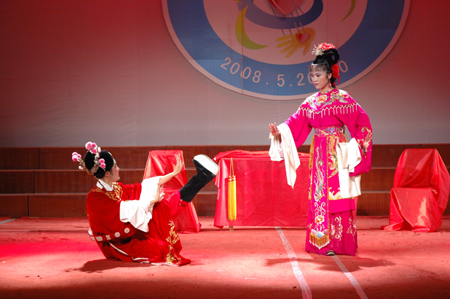 五场音乐会,汇集了独唱、独奏、合奏、重奏等多种艺术形式,节目内容丰富多彩,精彩纷呈,中西音乐相得益彰。舞蹈婀娜多姿,艺术歌曲饱满嘹亮,声乐独唱的优美动听、灵动亲切,民乐合奏的气势磅礴,古筝独奏的意韵深远,钢琴独奏的绮丽婉转,西洋管弦配乐真挚动人。其中《黄梅戏演出专场》为艺术周增添了一道亮丽的风景,07级黄梅戏(表演专业)14位学生粉墨登场,为大家奉献了一道戏剧大餐。