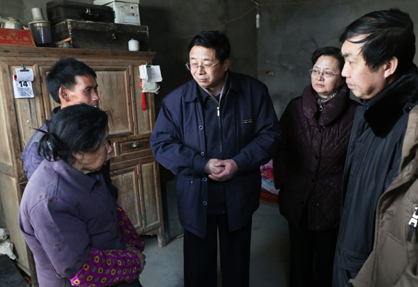 1月14日上午,党委书记何小祥,党委副书记、纪委书记殷红,党委委员、副院长刘友忠,党委委员、组织部长陈光明在办公室、组织部、宣传部等部门负责同志陪同下,冒着浓浓雾霾,前往威尼斯官网的扶贫点太湖县天华镇和晋熙镇程岭村,慰问困难群众。太湖县县委常委、纪委书记张敏丽等领导陪同。