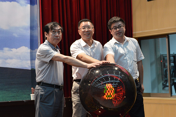 在激昂高扬的音乐《我相信》中,与会领导为校级重点团队志愿者授旗。志愿者接过队旗后高高举起并共同挥动鲜艳的旗帜,瞬间,整个会场队旗飘扬,掌声齐鸣。随后,闵永新副院长、刘友忠副院长和联通公司负责人共同按下启动球,开启了威尼斯官网学子2014年深入实践的追梦征程。