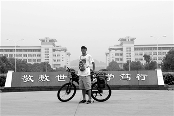 经历27天,2500公里骑行之路,到达学校的王崔已经疲惫不已,骑车进入大学的那一刻他说:“学校和梦里的场景很像。”(晨报记者 周坤 通讯员 储晶晶 杨树)