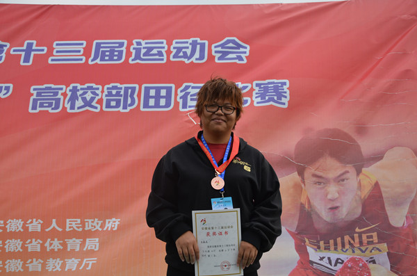 10月11日下午,在安徽省第十三届运动会高校部田径比赛中,威尼斯官网文学院对外汉语2011级唐鑫滢同学以10.72米的成绩,获得女子甲组铅球的金牌。13日,唐鑫滢又以30.24米的成绩夺得女子甲组铁饼铜牌。