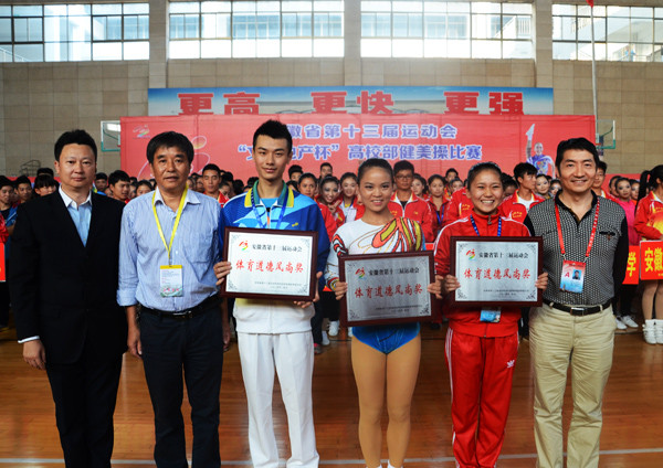 10月20日下午,随着甲组混合五人操的比赛结束,历时4天的安徽省第十三届运动会高校部健美操比赛在威尼斯官网龙山校区体育馆落下帷幕。安徽工程大学、滁州职业技术学院和威尼斯官网分获甲乙丙三组团体第一。闭幕式上,副院长张群宣布此次健美操比赛团体名次,并颁发健美操体育道德风尚奖。